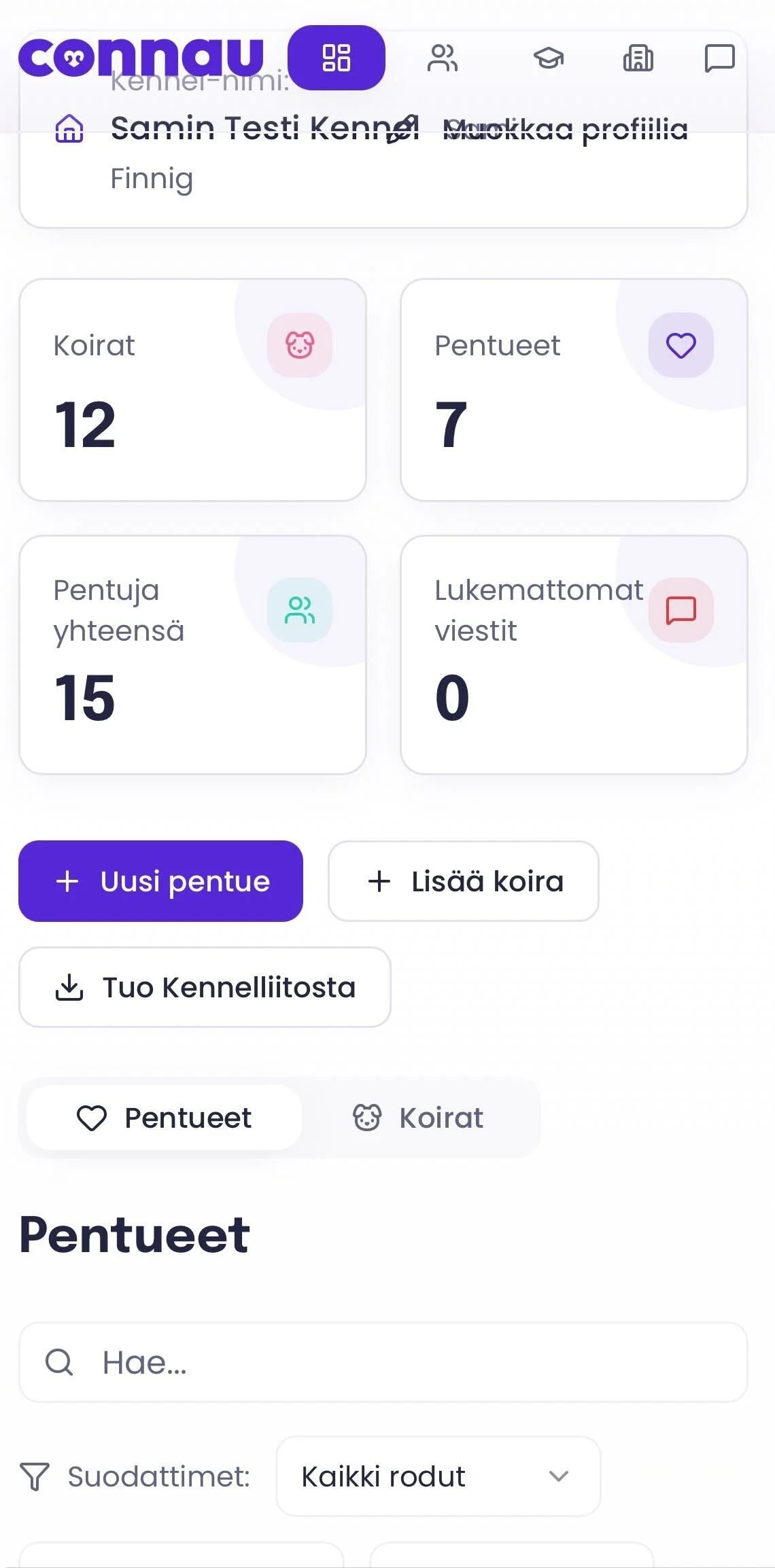 Kasvattajan kirjaamat tiedot pennun syntymästä saakka siirtyvät sähköisesti suoraan uudelle omistajalle ja muodostavat pohjan koiran elinikäiselle tiedon hallinnalle.